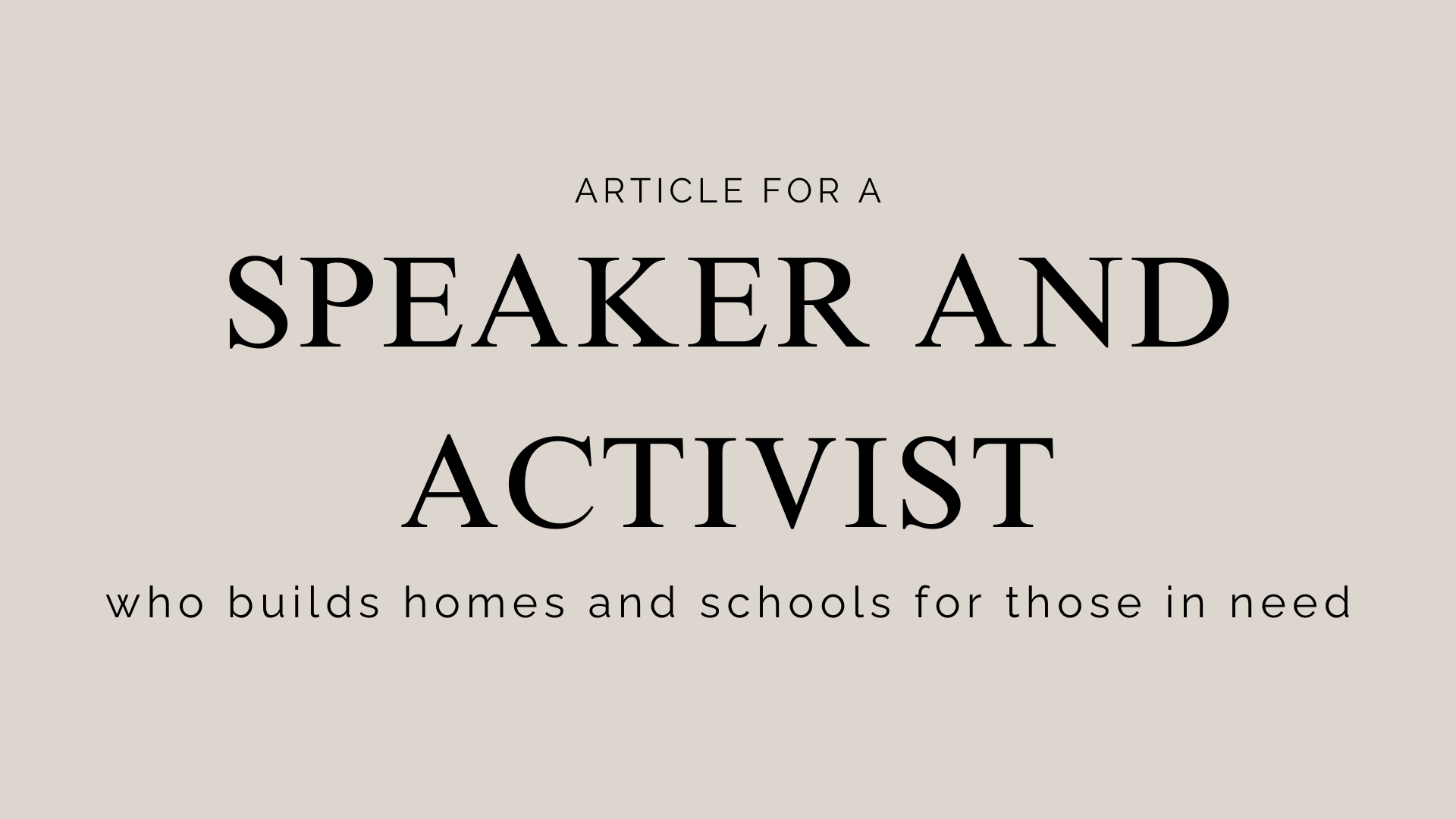 Article for a speaker and activist who creates homes and schools for those in need.